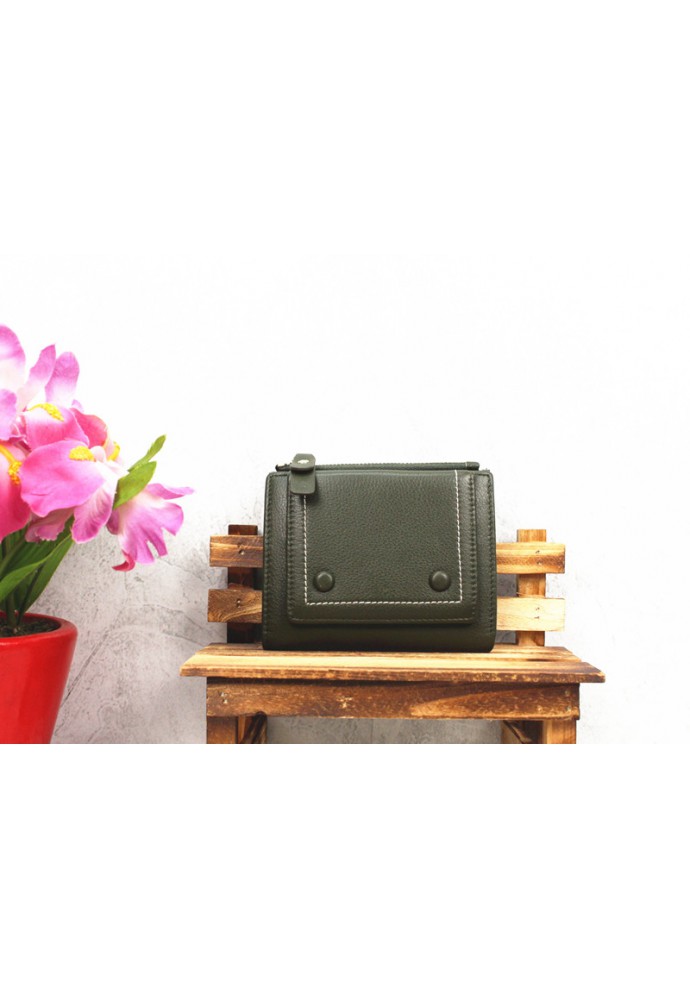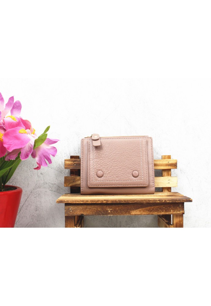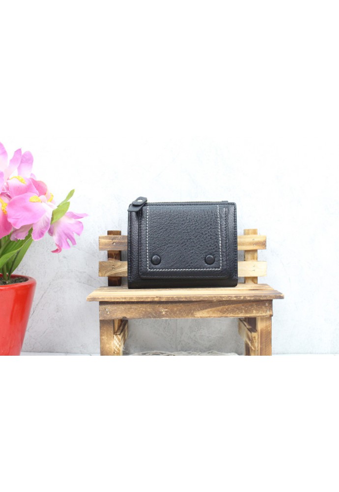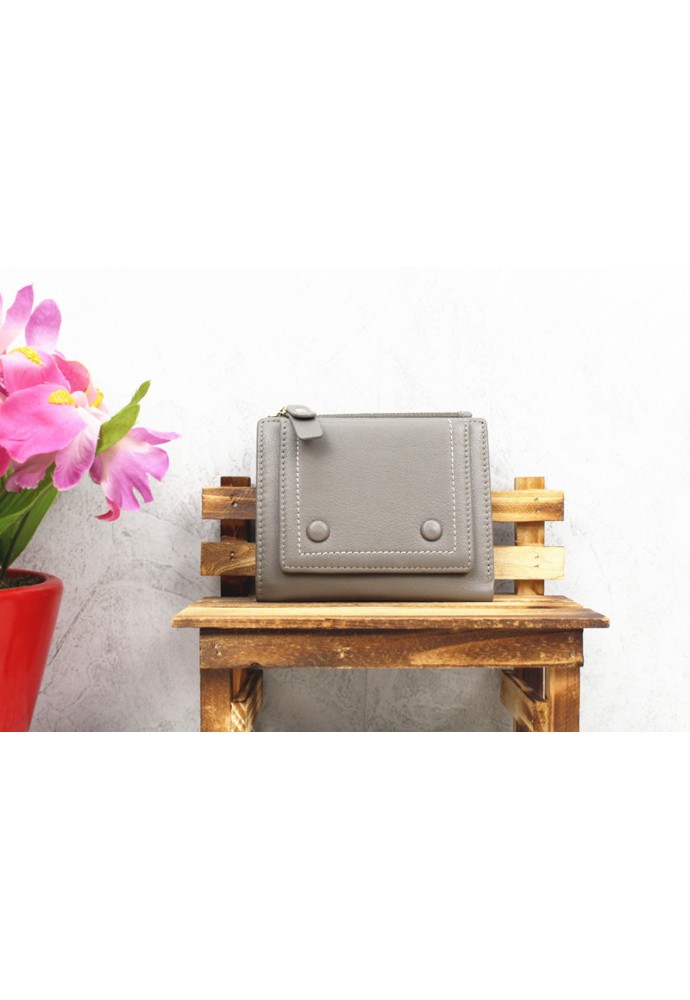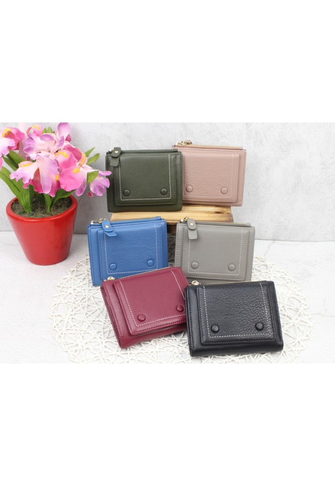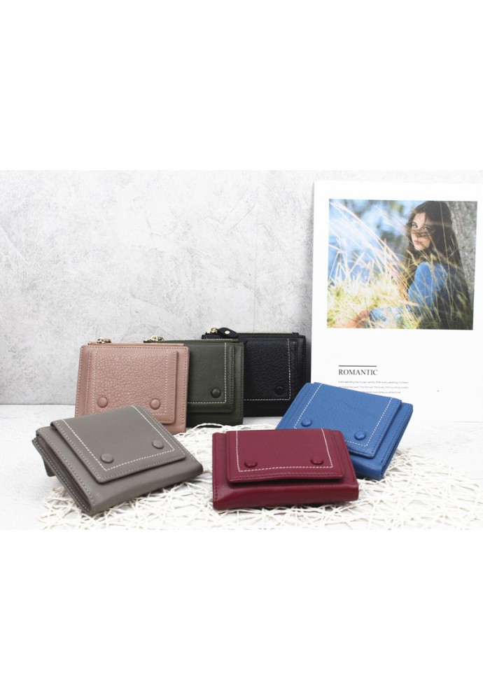 包鈕扣牛皮短銀包
